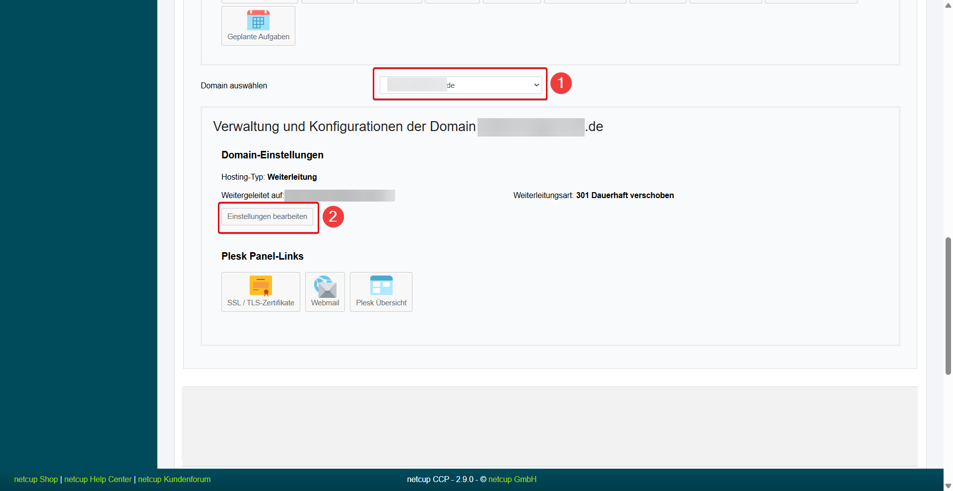 1. Weiterleitung über das Customer Control Panel (CCP) einrichten
