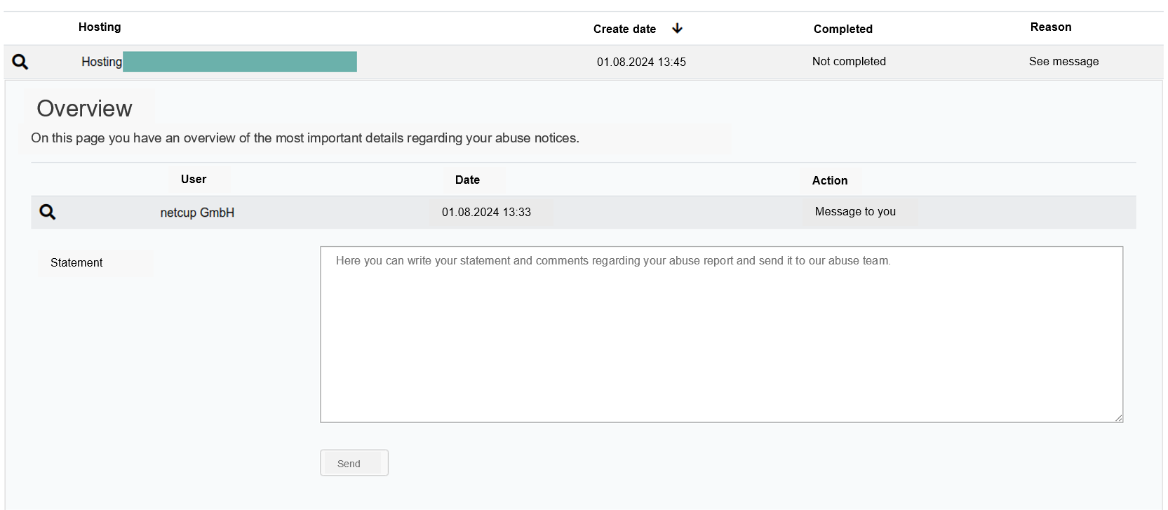 Abuse notices inform you about problems related to your use of netcup products, such as copyright violations or exceeding storage space limits.